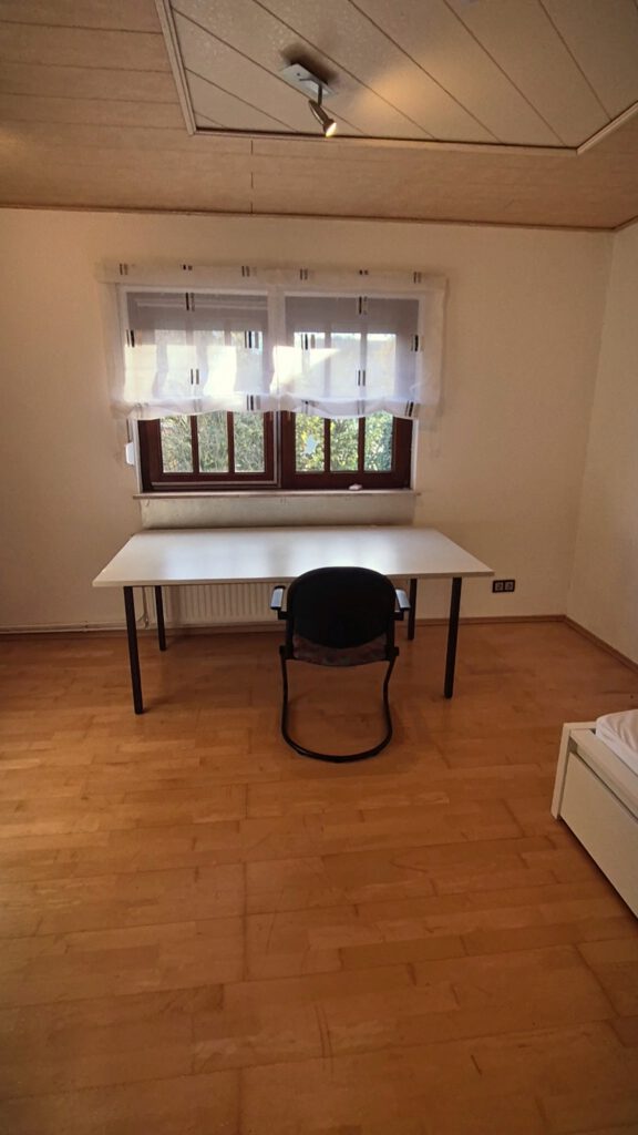 In einer 4er WG, ab Mai 3er WG, wird ein helles, voll möbliertes Zimmer in der oberen Etage eines Einfamilienhauses frei. Das Zimmer liegt ruhig zum Garten hin und ist vollständig ausgestattet – inklusive Bett, Matratze, Decke, Kissen, Beleuchtung und Gardinen, sodass du ohne Aufwand einziehen kannst. Das Haus befindet sich in einer ruhigen, angenehmen und dennoch zentralen Wohngegend nahe der Universität Saarbrücken. Die Nachbarschaft ist freundlich, die nächste Bushaltestelle ist in etwa fünf Minuten zu Fuß erreichbar und Einkaufsmöglichkeiten befinden sich rund sieben Minuten entfernt. Mit dem Fahrrad benötigt man etwa 10 bis 15 Minuten zur Uni.