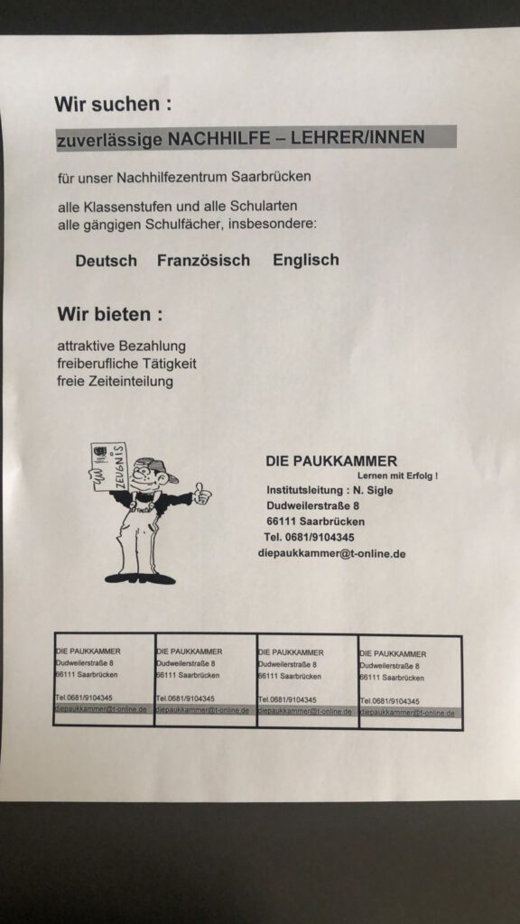 - Erfahrung (Nein/ Ja: Wie viele Jahre, mit welchen Altersgruppen, spezielle Prüfungsvorbereitung)