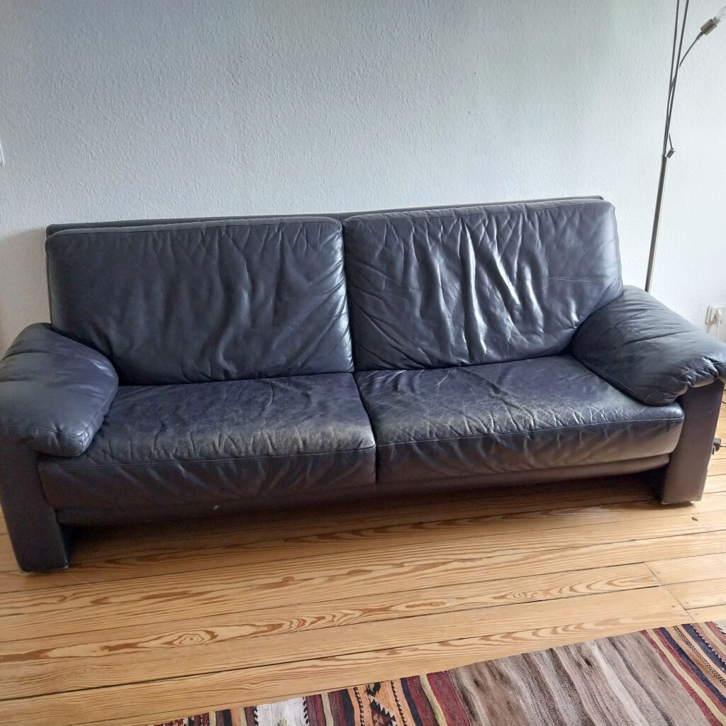 Ledersofa ( 2,oom × 1,oom) mit Gebrauchsspuren für €20,00 zu verkaufen.