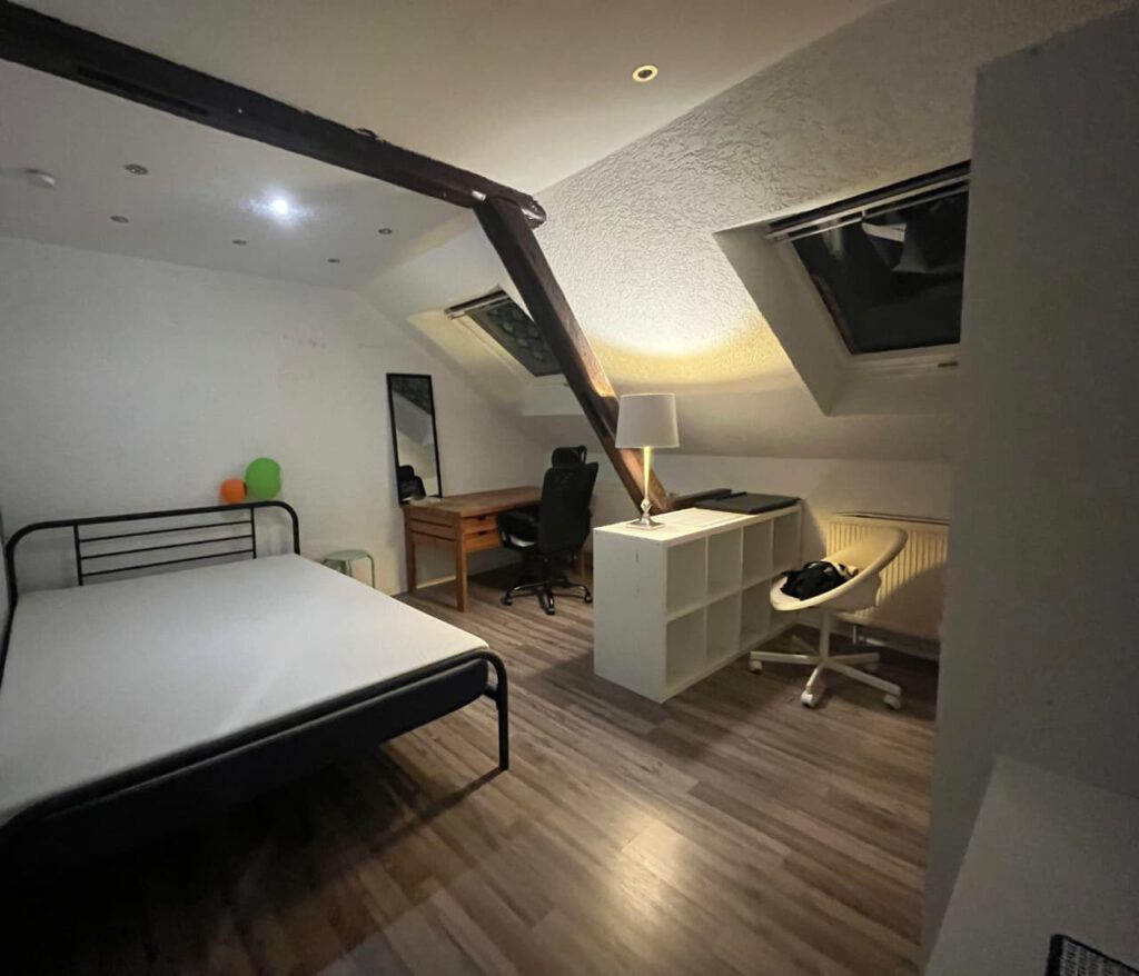 A fully furnished room in a 5-room shared apartment (student flat) is available for sublet for 3 months from November to February. The room is equipped with a bed, mattress, desk, office chair, wardrobe, and drawers.