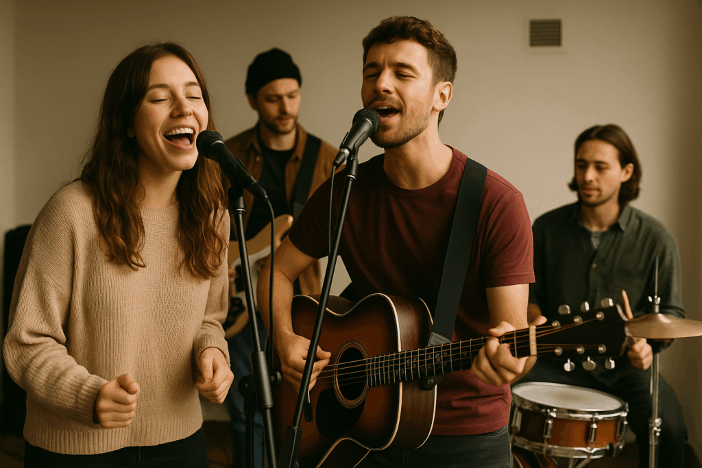 We could sing and play modern pop songs, Christmas music, and other uplifting pieces. Ideally, some of you play instruments (guitar, keyboard, drums, etc.), but it’s not a must – the main thing is enjoying music together.