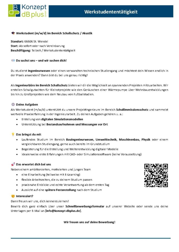 Werkstudent*in im Bereich Schallschutz/Akustik