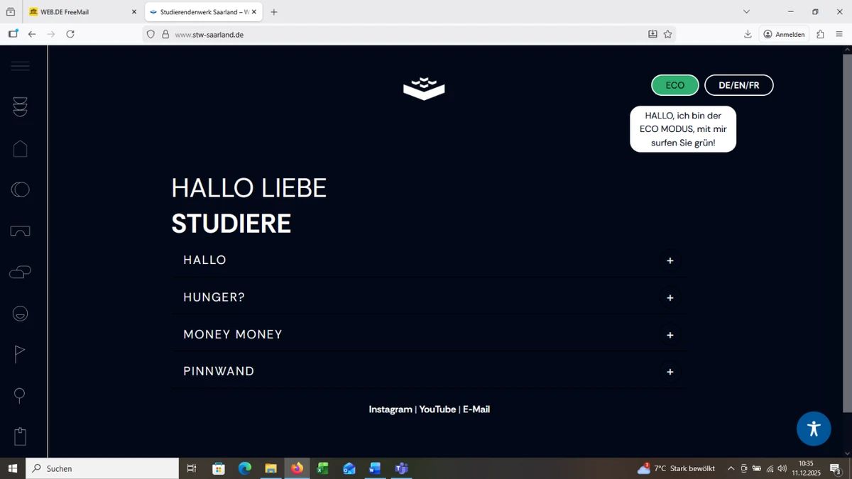 Auf der Internet-Seite vom Studierendenwerk Saarland gibt es eine besondere Funktion.
