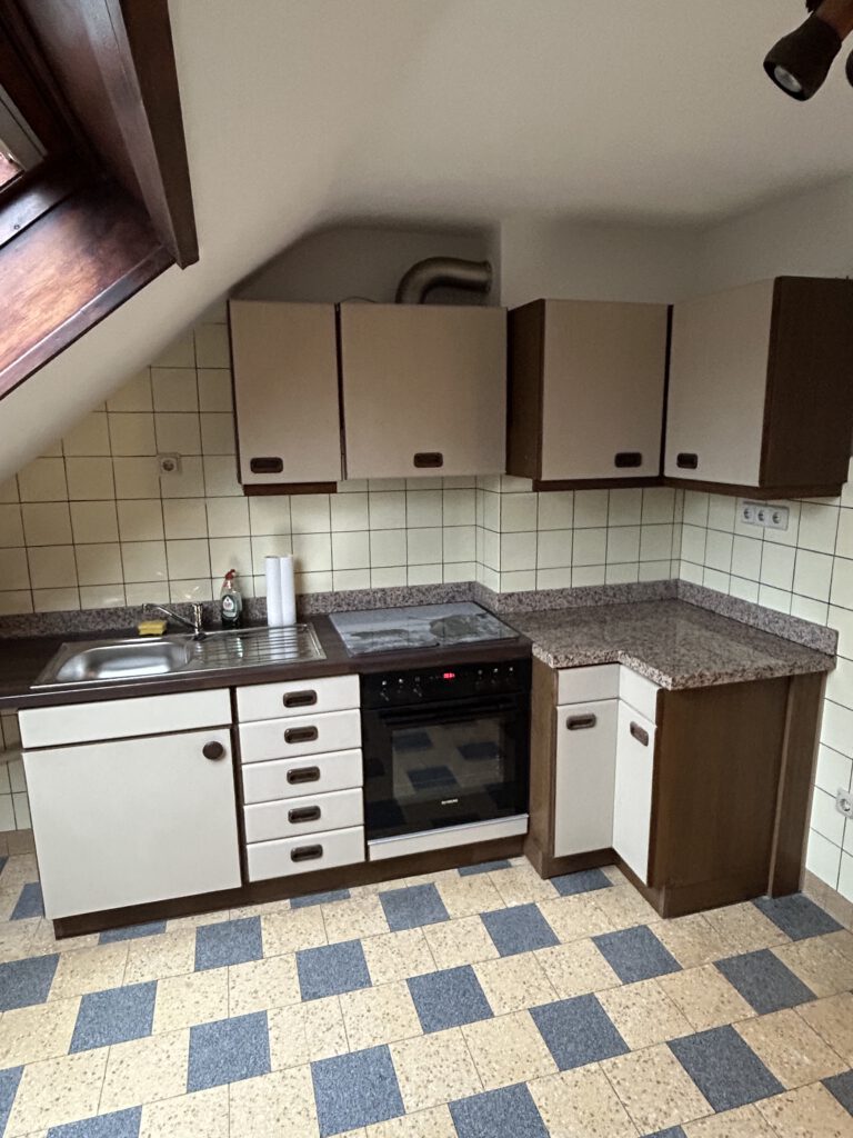 Schöne 2 ZKB DG Wohnung mit kleinem Balkon incl. Einbauküche, Badewanne, neues WC, 58 qm, neu renoviert. Die Wohnung ist in einem Privathaus mit wenigen Wohnungseinheiten.