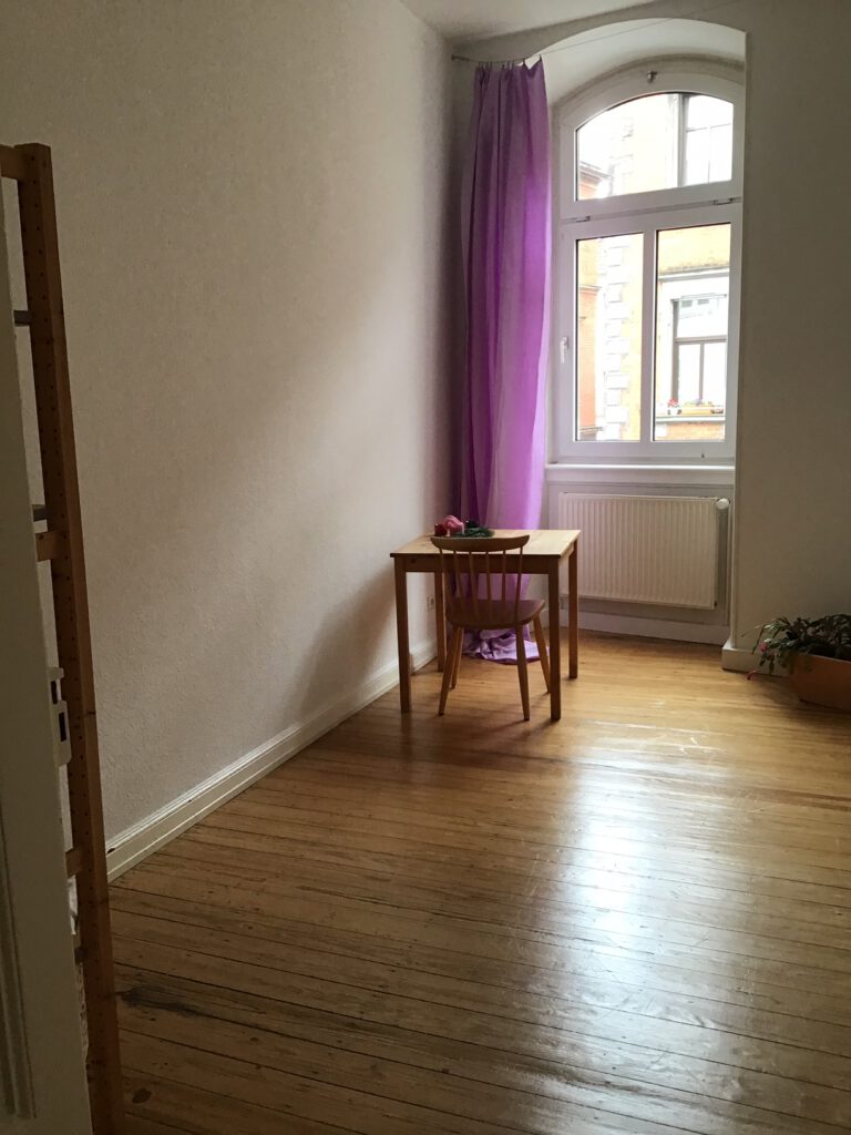 Das 11 qm Zimmer, dass ich zur Untermiete anbiete, liegt in einem Altbau mit hohen Decken und ist sehr hell.