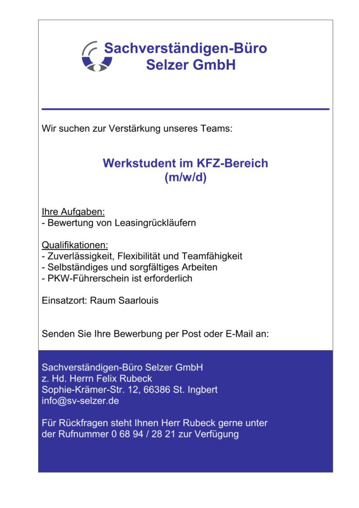 Werkstudent im KFZ-Bereich (m/w/d)